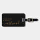 Étiquette À Bagage Elegant Black Gold Monogram Script Name