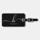 Étiquette À Bagage Elegant Black White Monogram Initial Script Name