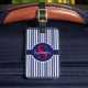 Étiquette À Bagage Élégant bleu marine rouge rayé monogramme initial