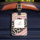 Élégant Classy Modern Pretty Cheetah Design étiquette bagage avec lignes rose et jaune pastel. . Un cadeau parfait pour elle, amie, soeur, mère. Possibilité de modifier et personnaliser votre nom sur. D'autres modèles sont disponibles dans mon magasin. Fabriqué par cmK.store.