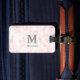 Cette étiquette à bagages a une texture de marbre rose et un monogramme gris. Sous la première, vous pouvez personnaliser la balise avec votre prénom ou nom de famille.