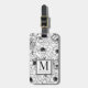 Étiquette À Bagage Élégant Floral Noir Nom Blanc Monogramme