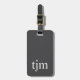 Elégant design entièrement personnalisable étiquette de bagages avec arrière - plan gris foncé, blanc gras monogramme. Ajoutez votre code QR avec vos coordonnées. Les coordonnées instantanément accessibles signifient que votre sac connaît toujours son chemin de retour :)