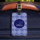 Élégante étiquette de bagages monogramme bleu initial. Ce design bleu présente votre nom et prénom monogrammé en typographie moderne gris clair imprimé sur un arrière - plan gris-bleu géométrique à motif. Cet élégant design branché est parfait pour votre chambre, chambre familiale ou salon. Personnalisez ce coussin élégant avec l'initiale monogrammée de votre famille et le nom de famille pour créer votre propre oreiller à lancer personnalisé. Vous pouvez modifier toutes les couleurs et polices de texte, cliquez pour customiser plus loin sous la zone de personnalisation de texte, ce qui vous amènera dans l'outil de conception. Un cadeau unique pour l'anniversaire, les fêtes et toute occasion spéciale. Que ce soit pour les valentines jour, Noël ou comme cadeau en général, il fait une grande idée cadeau