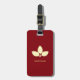 Elégante silhouette de laurier jaune clair sur étiquette bagage rouge bordeaux.