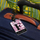 Les motifs floraux violets, roses chauds, noirs et blancs sont modernes, élégants et simples. Voyagez avec style avec une étiquette monogrammée. Le monogramme gras sur le devant et les coordonnées sur le dos sont faciles à mettre à jour.