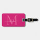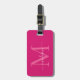 Étiquette À Bagage Élégant Monogramme blanc rose magenta Nom du scrip