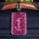 Élégante fausse parties scintillant d'argent rouge goutte étiquette de bagages monogrammed. Magnifique, moderne et cool pour le brancheur tendance et amateur d'art. Ce design élégant et sophistiqué conviendra aux filles qui aiment les designs brillants et classe. Montrez votre style personnel, regardez à la mode, tendance et se sentir élégant et Voyage avec style avec un design unique sur une étiquette de bagages ou customisez-le sur un autre produit de votre choix. La personnalisation comme un cadeau pour les valentines jour, Noël ou comme un cadeau en général fait une excellente idée cadeau pour toute femme qui aime l'élégance brillante moderne. VEUILLEZ NOTER : Il s'agit de graphiques imprimés plats - pas de parties scintillant réelle, de bijoux ou de pièces surélevées.