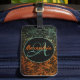 Étiquette À Bagage Élégant Monogramme floral orange et vert noir