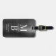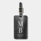 Élégante étiquette de bagage en métal brossé noir monogramme.