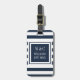 Étiquette À Bagage Élégant Monogramme Nom de famille Marine Blue Stri