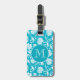 Étiquette À Bagage Elégant monogramme Turquoise & Blanc Floral Damask
