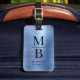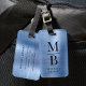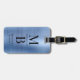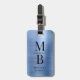 Élégante étiquette de bagage en métal brossé monogrammé bleu