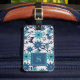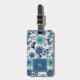 Étiquette À Bagage Élégant Motif de fleurs bleu turquoise Monogramme