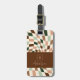 Étiquette À Bagage Élégant Neutre À damiers Personnalisé Monogramme