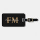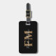 Étiquette À Bagage Élégant Noir Monogramme Or Nom de script élégant