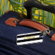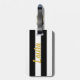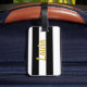 Cette étiquette à bagages rayés a un jeu de couleurs noir et blanc classique. Vous pouvez personnaliser avec votre nom en faux (pas de feuille) script or.