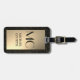 Étiquette À Bagage Élégant or et noir métal monogramme Nom