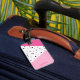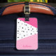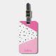 Étiquette À Bagage Elégant pois noirs en cuir rose géométrique modern