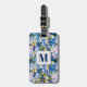 Étiquette À Bagage Élégant Royal Blue Abstrait Botanical Monogrammé