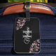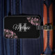 Étiquette À Bagage Élégant Script Black White Girly Floral Monogramme
