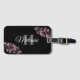 Élégante étiquette de bagages monogramme noir et blanc. Flore, étiquette à bagages aquarelle. Parfait pour elle. Personnalisez avec votre initiale et votre nom.