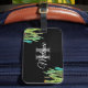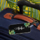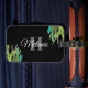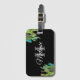 Étiquette À Bagage Élégant Script Black White Girly Floral Monogramme