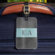 Un monogramme en métal brossé bleu et gris décore cette étiquette de bagage Ce design élégant, élégant et moderne mettra en valeur vos bagages. Conçu pour vous par Blackberry Boulevard.