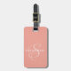 Étiquette À Bagage Élégant Script Monogramme Rose Pâle Cuir Mignon