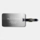 Étiquette À Bagage Elegant Silver & Black Metallic Brushed Monogram