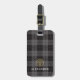 Voyagez dans un style de première classe avec cette étiquette à bagages personnalisable qui comprend un motif classique en plastique tartan noir et gris avec un emblème en or et un nom personnalisable sur le devant. L'arrière dispose d'espace pour ajouter un nom, une adresse, un numéro de téléphone et une adresse e-mail. Ce design masculin sophistiqué fera un grand cadeau aux hommes qui aiment voyager dans le style.