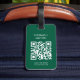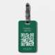 Étiquette À Bagage Élégant vert foncé blanc gras monogramme QR Code