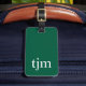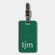 Elégant design entièrement personnalisable étiquette bagage avec arrière - plan vert foncé, blanc gras monogramme. Ajoutez votre code QR avec vos coordonnées. Les coordonnées instantanément accessibles signifient que votre sac connaît toujours son chemin de retour :)
