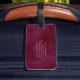 Cette étiquette minimaliste à bagages est dotée d'une typographie vintage et élégante de texte doré et d'une disposition classique simple sur un riche arrière - plan de texture bordeaux pour un look professionnel pour le voyageur d'affaires.