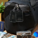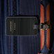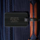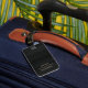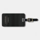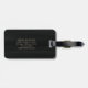 Cette étiquette minimaliste à bagages est dotée d'une élégante typographie vintage en or et d'une disposition classique simple sur un look noir foncé texturé arrière - plan pour un look professionnel pour le voyageur d'affaires.