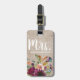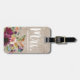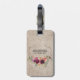 Étiquette À Bagage Élégant violet fleuri Monogramme Rustique lin beig