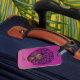 Ce design est composé de "Queen, phénoménal, beau, intelligent, magique, patron, aimant, sexy, indépendant, drôle, créatif et fort" niché dans son afro, avec des colliers superposés sur un arrière - plan rose chaud, magenta.