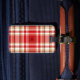 Étiquette bronzage et rouge de bagage de plaid