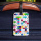 Étiquette de bagage avec la conception espagnole de mots croisé de mois. L'avant a l'espace blanc pour l'information de nom et adresse. Mots espagnols pour les mois. Coloré, amusement, grands pour des voyageurs, et des amants de jeu de mots croisé et des amants de langue espagnole.