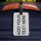 L'étiquette de bagage avec le bracelet en cuir se tiennent dans le carrousel de bagages avec une étiquette faite sur commande de bagage de Zazzle ! Pas plus grand qu'un carte de visite et construit avec de l'acrylique de 100%, cette étiquette de bagage est prête à comique aux exigences de voyage de n'importe quel mobile ou chercheur d'aventure. Produit utilisant le processus d'impression d'AcryliPrint®HD, votre étiquette de bagages montre les conceptions, le texte, et les photos dans la clarté vibrante et les couleurs brillantes. La personnaliser avec vos informations personnelles sur chaque sac de côté et d'évasion se mélangent se lève pour les années à venir. Fait de l'acrylique ultra-durable. Résistant et imperméable UV. Courroie en cuir de bagage incluse. Taille 2" x 3,5" (taille de carte de visite).