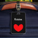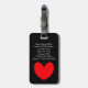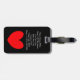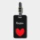 Absolument jolie étiquette de bagage noire avec un cœur rouge imprimé dessus. Personnalisez votre nom et adresse et faites-en vôtre !