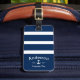 Personnalisez les deux côtés de cette étiquette de bagage nautique bleue et blanche unique.