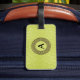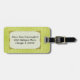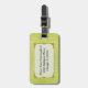Jolie étiquette de bagage, avec des graphiques d'un aspect similicuir d'autruche chartreuse. Une zone de texte élégante encadrée, sur le devant, et des graphiques d'une zone de monogramme en fil rond ton doré, au dos de l'étiquette, comporte un texte personnalisé noir prêt à être personnalisé. Une façon chic de distinguer vos bagages des autres, et facilement identifiable pour ne pas rester perdu longtemps.