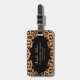 Étiquette personnalisée chic et à la mode de bagage avec le poster de animal comportant le beau noir sur les taches jaunes de fourrure de jaguar et la plaque signalétique fleurie noire. Personnalisez-la avec votre propre nom et entrez en contact avec l'information ou customisez-la plus loin si vous souhaitez ajuster la disposition.