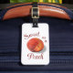 Montrez votre amour pour l'été avec cette étiquette de bagage à thème pêche. Ce design de pêche douce et veloutée présente des tons chauds et lumineux de rougeur, écarlate, ambre, corail et lilas. Personnalisez en modifiant ou en supprimant le texte. J'ai créé ce motif à partir d'une image dans ma peinture acrylique originale.