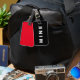 Étiquette noire et rouge drôle de bagage avec la "mine" écrite là-dessus