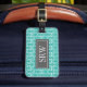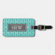 Étiquette faite sur commande élégante et chic de bagage de monogramme dans le motif vintage contemporain de damassé florale classique de bleu de paon de turquoise, grise et blanche. Personnaliser avec vos initiales et votre information de contact.