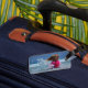 Une étiquette de bagage avec votre propre photo de vacances ! L'information de contact personnalisée d'un côté.