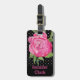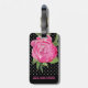 Étiquette élégante de bagage faite dans le noir avec le pois et l'illustration blancs minuscules d'aquarelle d'une fleur assez rose de fleur de pivoine. Personnalisez le texte rose, sur l'avant et le dos, pour lire ce que vous voulez. Belle manière de repérer votre bagage d'une distance.