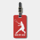 Étiquettes faites sur commande de bagage de voyage de cadeau de joueur de tennis. Étiquettes personnalisés de bagages pour la valise ou le sac. Conception moderne de silhouette de joueur frappant une boule en tant que tir de dépassement d'avant-main. Ajoutez votre propres nom, monogramme, citation drôle et adresse sur le dos. Exemple : Embrassez mon as ! Refroidissez l'idée de cadeau de fête d'anniversaire de sports sportifs pour le joueur de tennis, l'équipe, l'entraîneur, l'entraîneur, le fils, le frère, le papa, le père, la maman, la soeur, le petit-fils, l'ami, le cousin, le fan, le personnel de club, le patron, le travailleur de Co, l'employé etc. approprié aux adultes et les enfants. Couleur rouge personnalisable d'arrière - plan. Inclut le bracelet en cuir. En outre disponible avec la fente pour votre propre carte de visite.